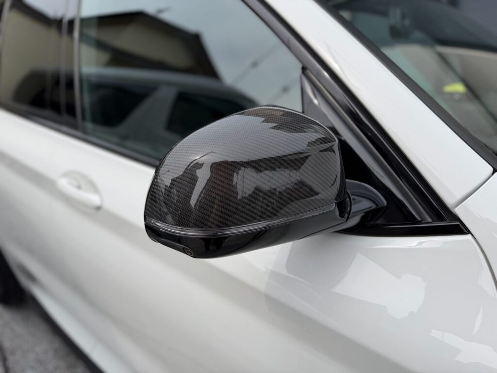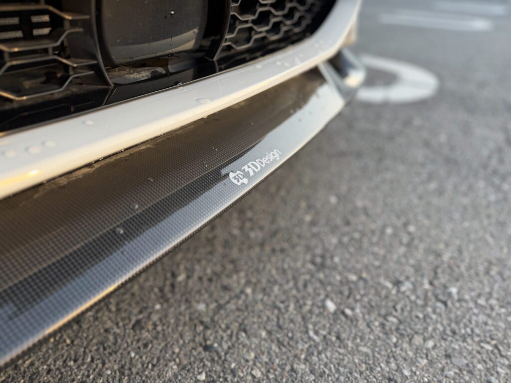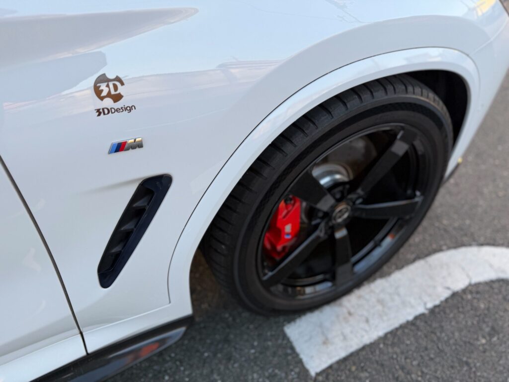1998年創業、BMWだけを専門に扱う日本発祥のチューニングブランド「3Dデザイン」によるカスタムが全身に施されています。カーボン調エアロパーツとMパフォーマンスキャリパー、鍛造20インチアルミホイールが組み合わさり、純正Mスポーツを超えた圧倒的な存在感を放ちます。「後付け感のない、ボディラインに沿った機能美」が3Dデザインの真骨頂であり、遠目から見ても一目でわかるオーラがあります。