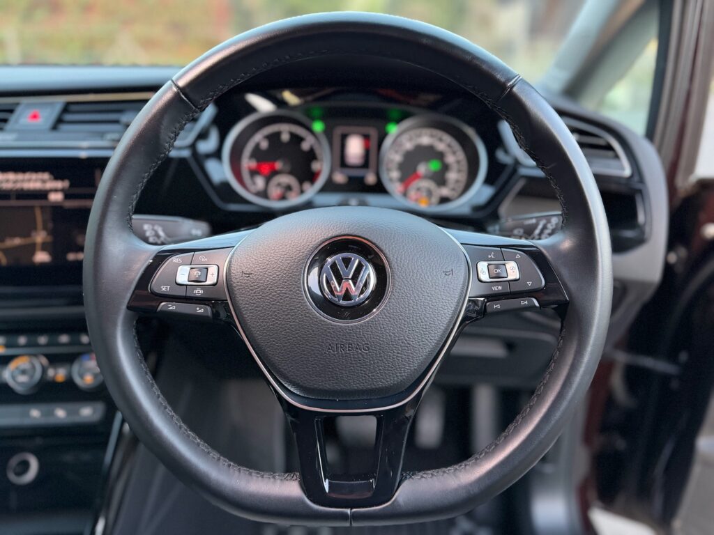 TDIプレミアム500台のうち、クリムゾンレッドメタリックはわずか100台の設定でした。このボディカラーはゴルフトゥーランでの初採用色でもあり、市場での流通数は非常に限られています。ストームグレーのレザーシートとの組み合わせは、同グレードのホワイトやグレー車体とは異なる、スポーティかつラグジュアリーな個性を放ちます。「人と違う輸入ミニバン」をお探しの方に、これ以上ない選択肢です。