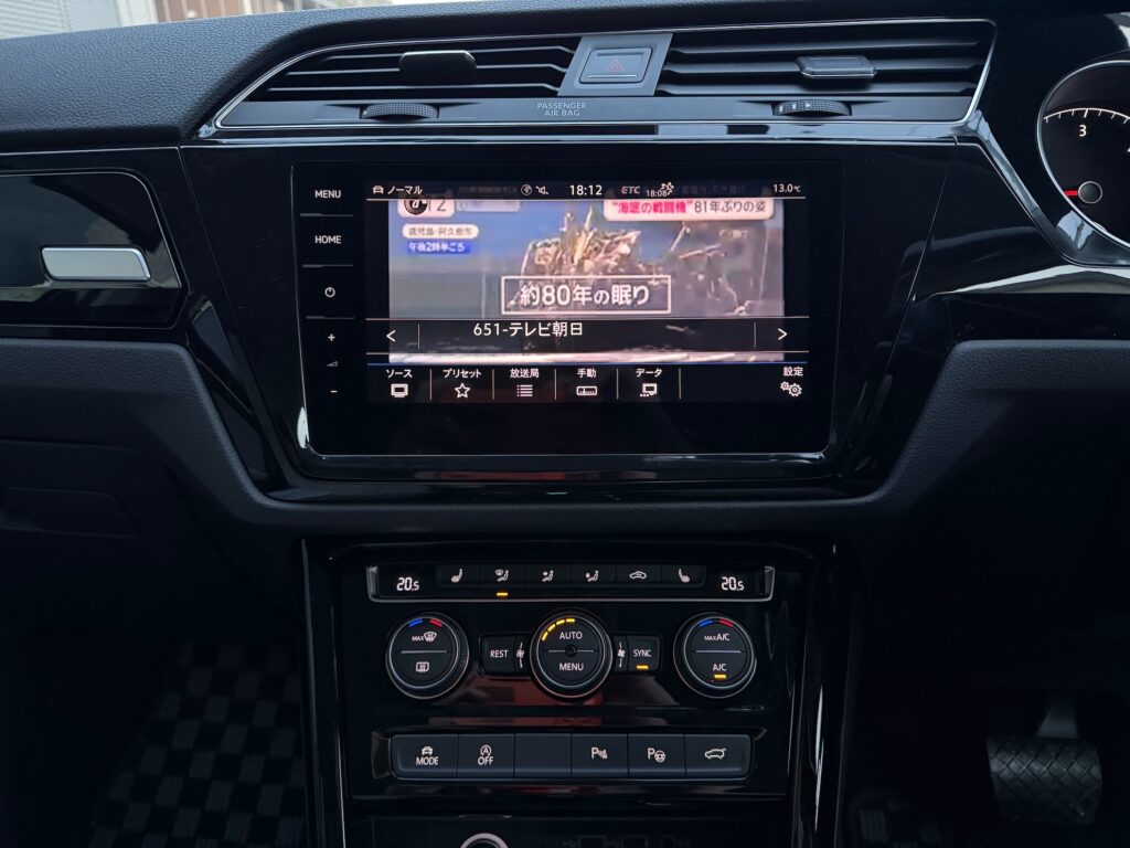 VW純正の9.2インチ大型インフォテイメントシステム「Discover Pro」を搭載。Apple CarPlayおよびAndroid Autoに対応しており、スマートフォンの地図やアプリをそのまま大画面で使えます。バックカメラ・パークディスタンスコントロール(前後センサー)も連携し、駐車時の安心感も高い仕上がりです。